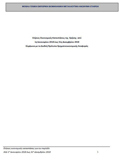Για να κατεβάσετε τις Χρηματοοικονομικές Καταστάσεις του 2018 πατήστε εδώ